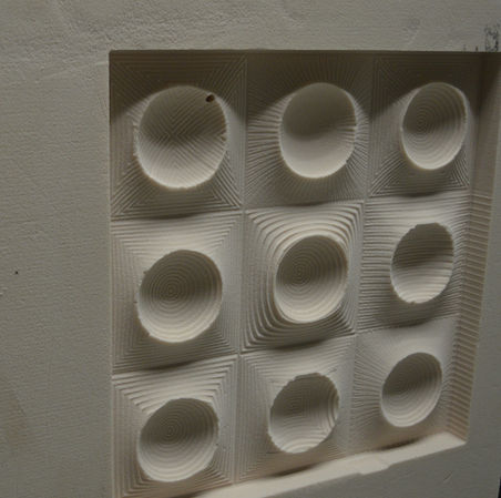 This research project examines variable material thickness as a means to modulate lighting levels. Panels of Medium Density Foam are CNC milled with custom toolpaths, then observed under different lighting conditions. At a particular depth, the opaque panels exhibit qualities of translucency - allowing the passage of soft light while maintaining privacy and adding visual interest.
